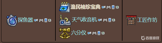 首頁 泰拉瑞亞 問答 泰拉瑞亞漁民寶典怎麼得? 2023-02-10 在遊戲《泰拉瑞亞》中,玩家完成漁夫NPC的釣魚任務的後有3.33%幾率得到漁民寶典。漁民袖珍寶典是一種可以顯示你目前漁力的信息配飾,作用是用於合成探魚器,玩家可以在工匠作坊中使用一個漁民寶典加一個天氣收音機和一個六分儀就可以合成探魚器。