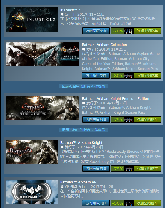 廣受歡迎的《蝙蝠俠》阿卡姆三部曲以及《樂高蝙蝠俠》系列的多款作品也開啟了特買活動。