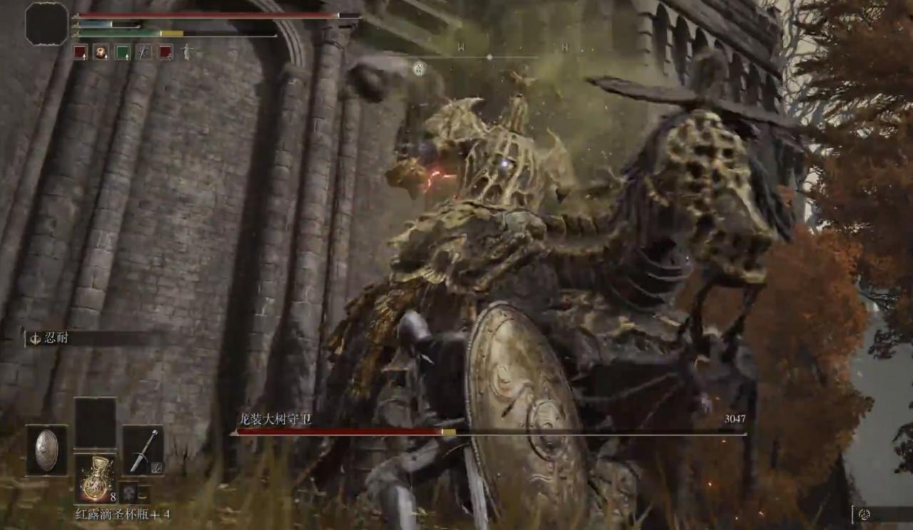 2、點擊進入後來到王城外圍,你會可以找到艾爾登法環龍裝大樹守衛,它的傷害值很高,要保證自己的血量。