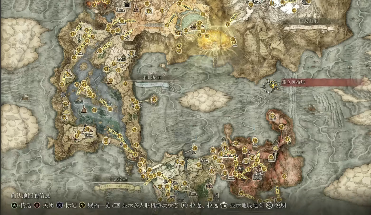 艾爾登法環有6個神授塔,分別是寧姆格福神授塔、蓋利德神授塔、利耶尼亞神授塔、西亞壇神授塔、西亞壇神授塔和孤立神授塔。