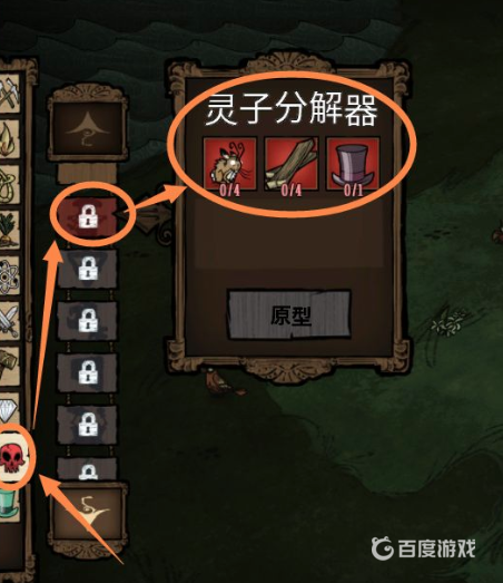 3、點擊菜單欄(魔法)圖標,建造(靈子分解器)即可建造三本,材料兔子*4、木板*4、高禮帽*1。