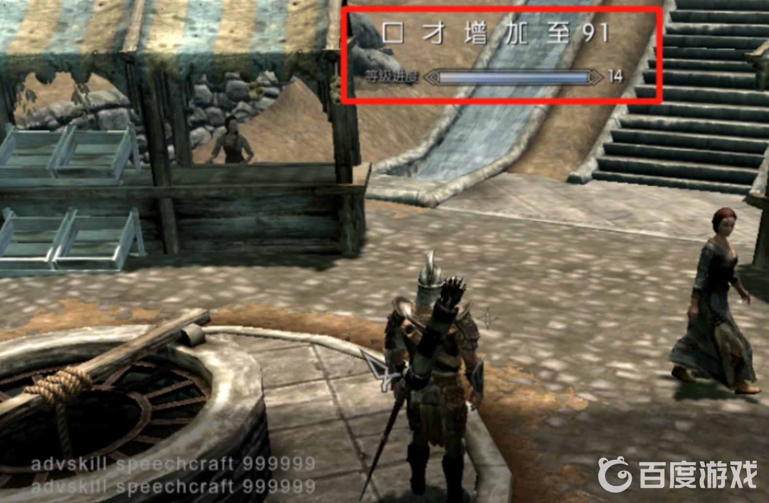 3、輸入advskill speechcraft 999999,口才技能會升到91級,並因此提升好幾個等級,升級能增加技能點。