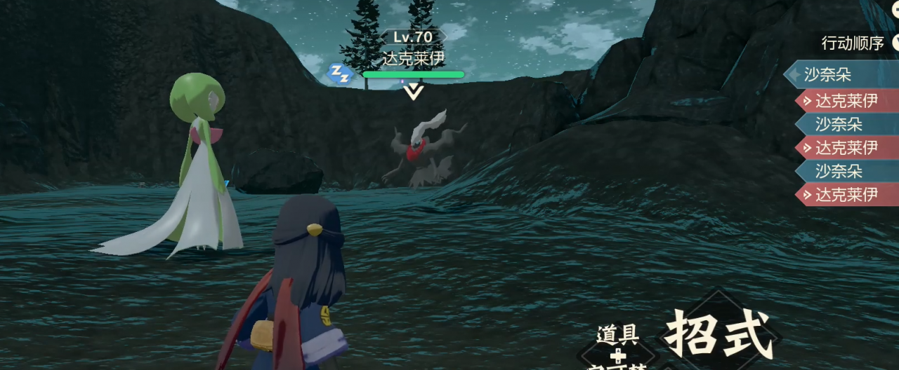 2、臨近就會看到周邊是一個峽谷,降落可觸發達克萊伊的劇情。達克萊伊只能通過戰鬥捕捉,建議使用迅疾 催眠術捕捉,成功率會高點。