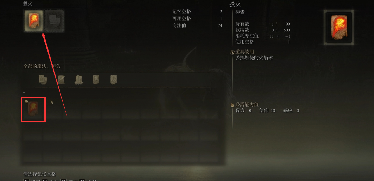 首頁 艾爾登法環 問答 艾爾登法環怎麼用禱告? 2022-07-01 1.要使用禱告首先需要裝備一個指頭聖印記。2.然後點擊賜福。3.點擊記憶。4.將購買的禱告裝備上去。5.裝備好後便可正常使用技能,此時就會自動使用禱告。