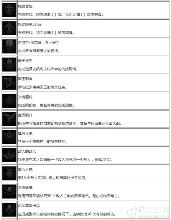 《巫師3:狂獵》獎盃列表已經放出,其中包括金杯2個,銀杯8個,銅杯42個,在收集全這3種獎盃後會解鎖白金獎盃,一共53個獎盃。