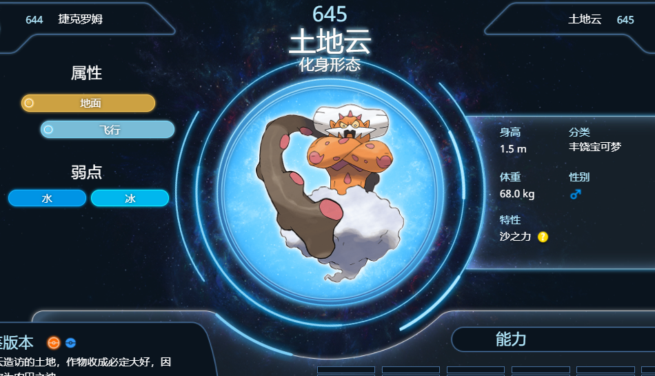 1、在寶可夢阿爾宙斯中,土地雲是地面與飛行屬性的寶可夢,特性是沙之力。