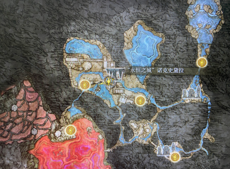首頁 艾爾登法環 問答 艾爾登法環靈依墓地鈴蘭8在哪? 2022-07-01 1.首先打開遊戲之後,來到地圖位置「永恆之城」諾克史黛拉,如圖所示。2.來到之後就可以拿到靈依墓地鈴蘭8了,這裡有特別多尖刺史萊姆,拿完趕緊跑,如圖所示。