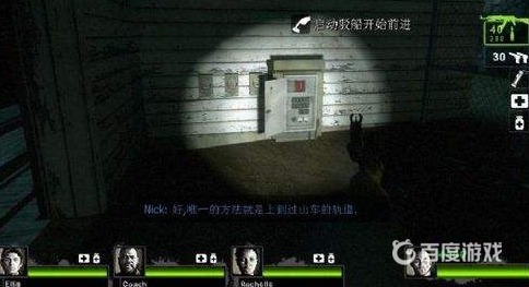 穿過剛才的一片草叢,幾個僵屍,來到啟動過山車的開關位置,按下開關,隨後過山車會啟動,等過山車開出去之後我們左側的門會打開,然後我們進入,一直順著軌道走
