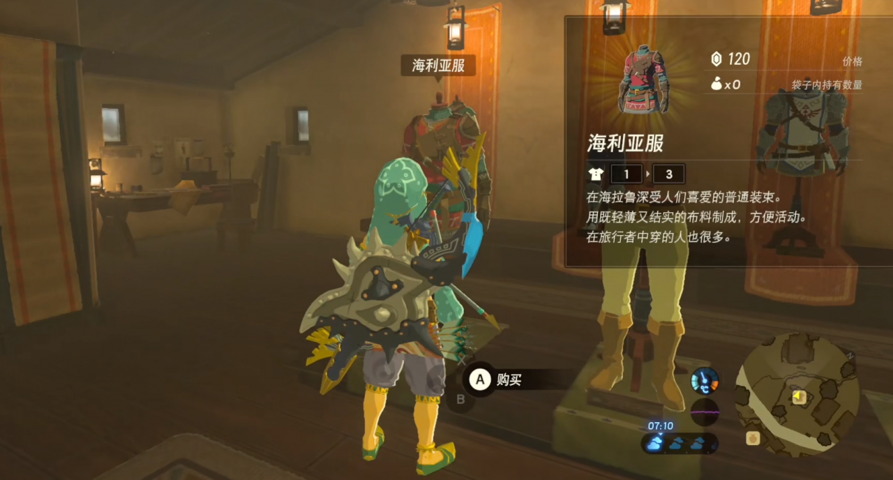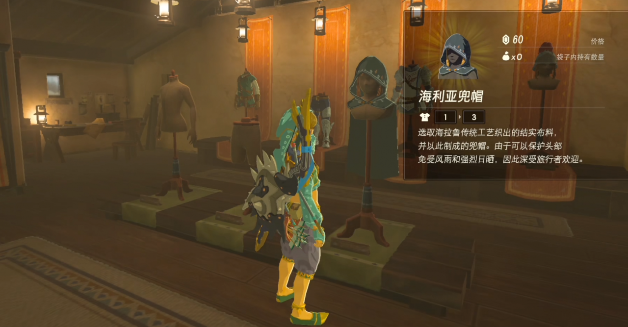 海利亞套裝可以在哈特諾村購買,在地圖中找到衣服樣式的圖標,那裡就是裝備商店,進門後右側展示的就是海利亞套裝。花掉270盧比,就能買到這一套裝備了。它們的價格分別是頭部:60盧比,衣服:120盧比,褲子:90盧比。