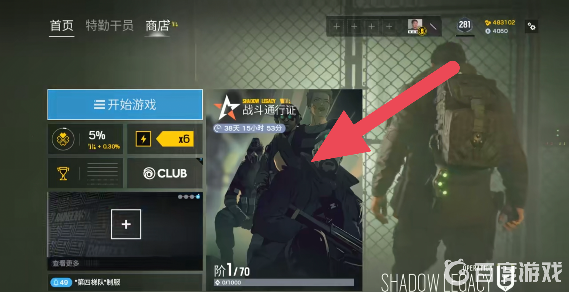 1、進入游戲後在游戲首頁點擊戰斗通行證