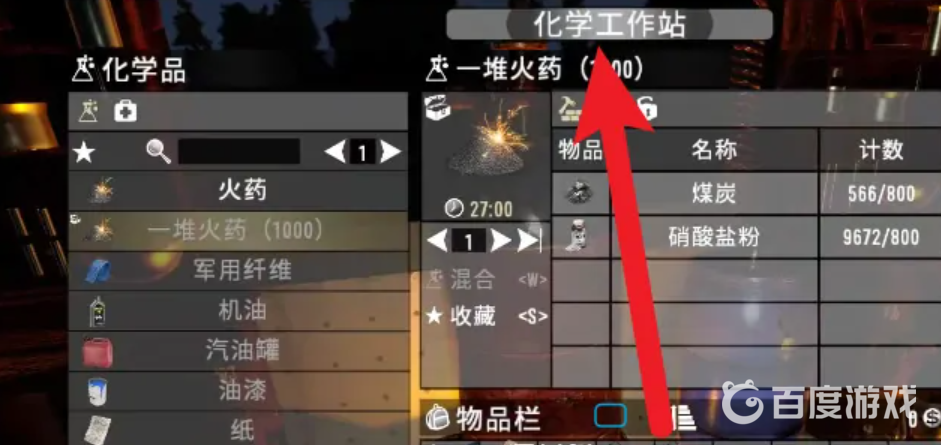 2、點擊選擇化學品菜單中的【一堆火葯】選項。