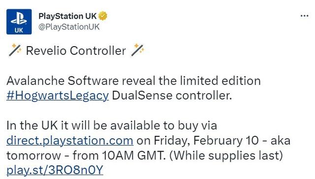 為了慶祝《霍格沃茨之遺》發售,PlayStation發布了一款特殊限量版PS5 DualSense 手柄,整體顏色為黑色,外加金色圖案點綴,但可惜的是,這款手柄目前只在美國和英國地區出售,2月10日正式開放購買,美版需要等到2月28日。