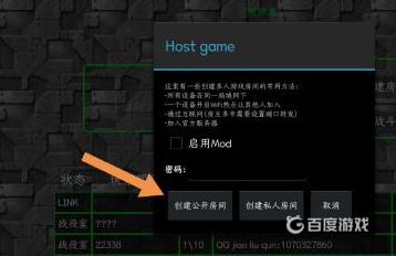 8.此時大廳就會顯示你的房間了,路人看見你的房間點擊就可以加入。如果朋友想加進來就把聯機地址發送給他,填到這裡就可以進入了