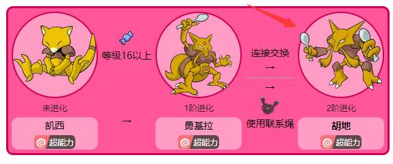 首頁 寶可夢傳說:阿爾宙斯 問答 寶可夢傳說:阿爾宙斯胡地怎麼進化? 2022-07-01 在寶可夢阿爾宙斯中,胡地已經是進化的最終形態了,無法再進化下去,如下圖中所示,玩家可以通過連接交換或聯系繩將勇基拉進化成胡地。