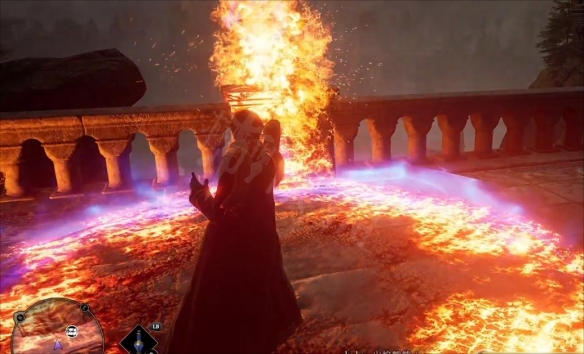 到達橋上後,玩家可以發現橋的左右兩邊會有四個火盆,首先使用“火焰熊熊”將其輪流點燃。