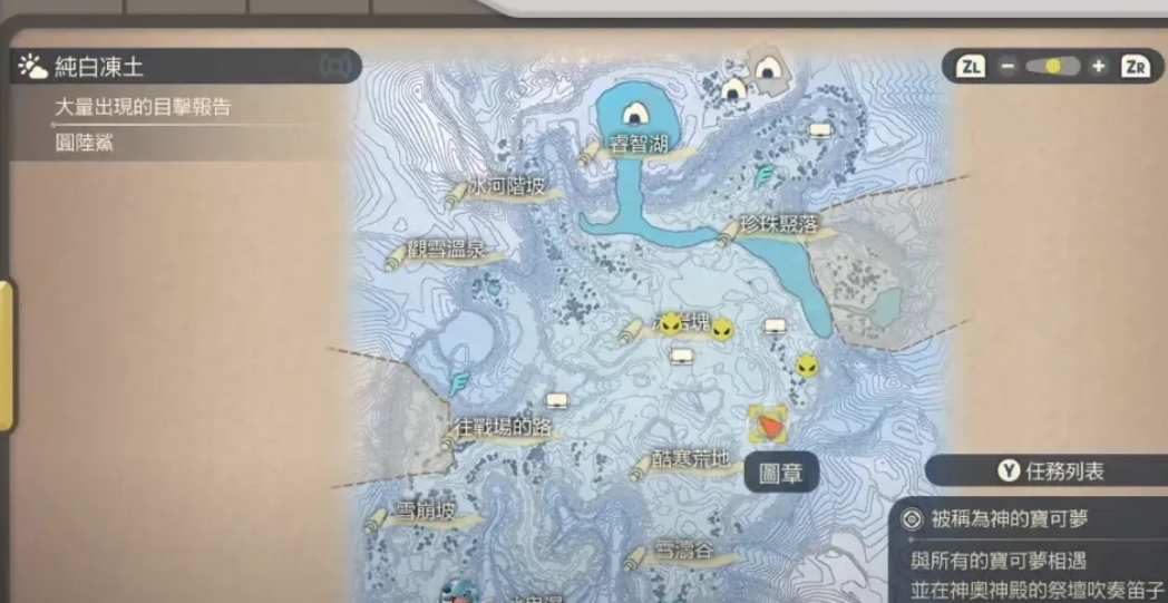 首頁 寶可夢傳說:阿爾宙斯 問答 阿爾宙斯索羅亞克在哪抓? 2022-07-01 索羅亞克的捕捉地點:純白凍土—酷寒荒地—如圖所示右上方的空洞裡面,索羅亞克就在洞穴的圖章箭頭所示處,看到以後直接捕捉就可以了。