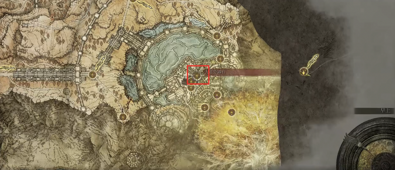 完成前置之後傳送回王城的露台篝火點(下圖紅框處)