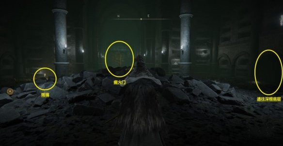 六、到達最底層即為【癲火封印】的賜福,右側有一個隱藏牆壁有一個寶箱,寶箱後面是通往深根底層的隱藏牆壁,經典大樹洞設計。