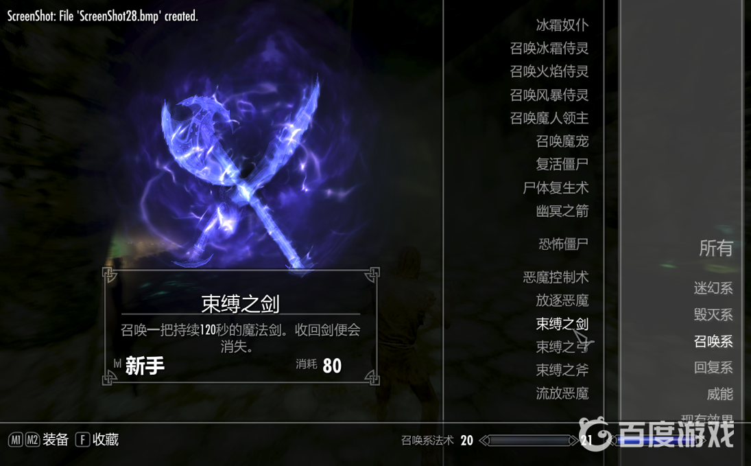 一把虛空而生的單手劍,攻擊力算不得多高,也就相當於普通的鋼劍,當然隨著召喚系法術等級的提升,召喚劍本身的攻擊力也會跟著提升。如果是走戰士路線沒什麼使用價值,不如乾脆用一把普通劍,如果是走戰法師路線,可以考慮用召喚劍練一練召喚術的級別。值得一提的是召喚劍本身也可以像普通武器一樣,雙手召喚再雙持,總之性價比也就內樣了。