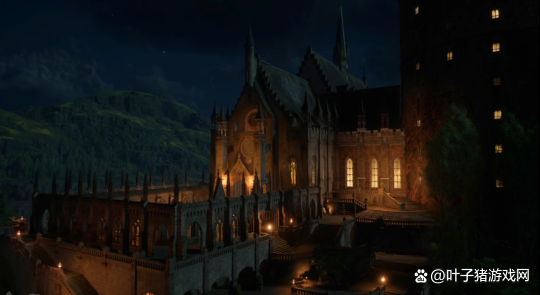 場景與建築可以說是這款遊戲最為值錢的部分了,尤其是作為遊戲重中之重的霍格沃茲學院,更是盡顯歐洲古堡的氣派與特色,外觀建築上的尖塔造型十分顯眼,騎著掃帚靠近觀看也是細節滿滿。走進校園內部,整體的風格也相當貼合「魔法」這一主題,比如自動浮現的樓梯、永不停止嬉鬧的人物畫像、還有能在校園里隨意傳送的節點。