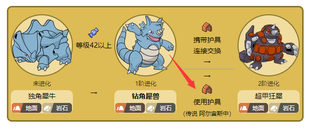 首頁 寶可夢傳說:阿爾宙斯 問答 寶可夢鑽角犀獸怎麼進化成超甲狂犀? 2022-07-01 在寶可夢阿爾宙斯中,【鑽角犀獸】是地面屬性與岩石屬性的寶可夢,當玩家對鑽角犀獸使用道具【護具】時,即可使其進化成【超甲狂犀】。