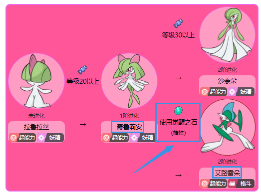 首頁 寶可夢傳說:阿爾宙斯 問答 阿爾宙斯覺醒之石能進化什麼精靈? 2022-07-01 1、在寶可夢阿爾宙斯中,覺醒之石可以用來進化奇魯莉安和雪童子,當對雌性的【奇魯莉安】使用該道具後,即可進化成艾路雷朵,如下所示。2、當對雌性的【雪童子】使用覺醒之石後,即可使其進化成雪妖女,如下所示。