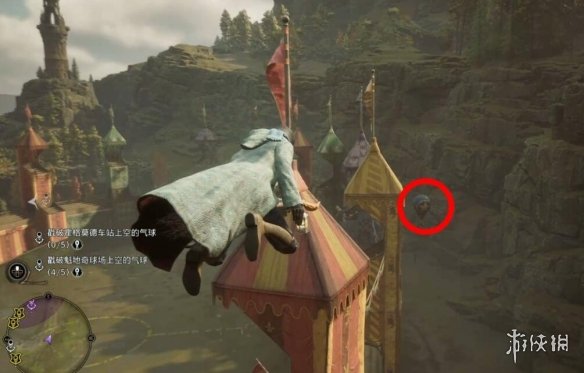 魁地奇球場大部分氣球都能看到,有一個在球場外的角落裡,容易漏。