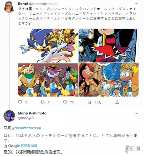《索尼克》IP誕生至今,衍生了多了影視、動畫、漫畫、已有超過幾十個角色,但並不是所有角色都能在遊戲里登場,索尼克漫畫中的自由戰士,自從在1993年的《索尼克彈珠》中客串後,就再未在其他的遊戲作品中露面。 岸本守央 的回復讓老粉絲們看到了一絲希望。