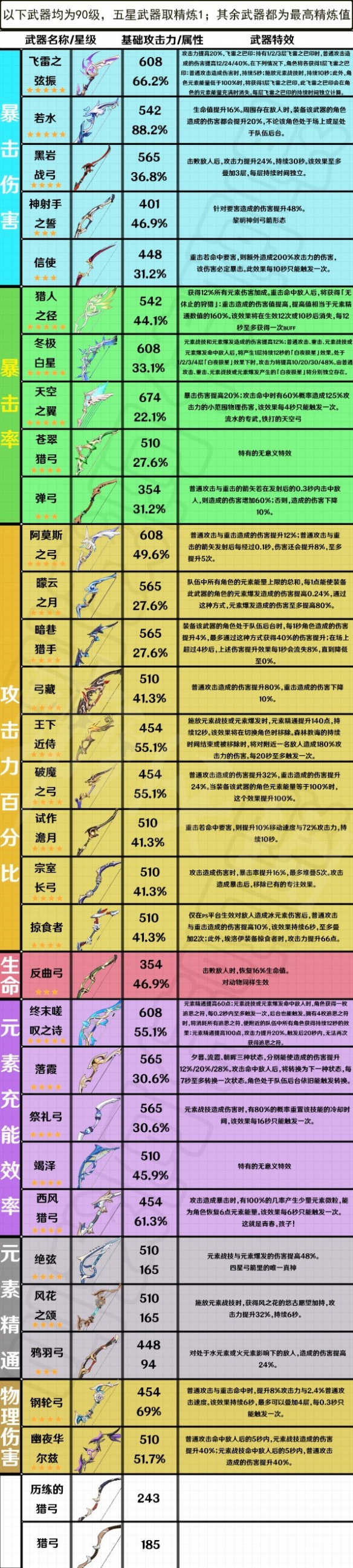 以上就是原神全弓箭武器屬性一覽的全部內容,想要了解更多相關攻略的小夥伴可以持續關注,這裡每天會為大家推送最新最全的攻略,一定不要錯過哦。