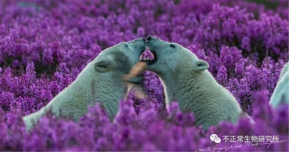 「Martin Gregus」發揮了他在無人機攝影方面的專業知識,花了不少時間等待,最終拍攝到了罕見又自在的北極熊在夏季悠閑的影像。在他的鏡頭下,夏季的北極熊在紫色花叢、綠色草地上留下了很多身影!另外,還有一些熊熊在盡情地打滾和玩耍,完全不像高超的捕獵者。