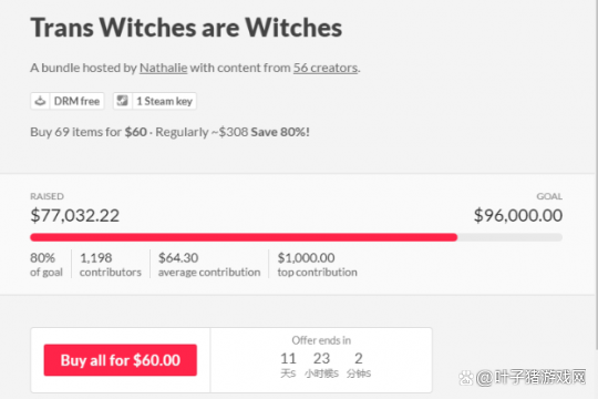 捆綁包出售後的收益,都將分給遊戲的創作者。至於中間的差價,自然是由活動的發起者來解決。當然啦,入選的遊戲都是LGBT人士眼中,最符合ZZZQ的作品。截止到目前,這個價值60美元的捆綁包已經籌措到了7.7萬美元。