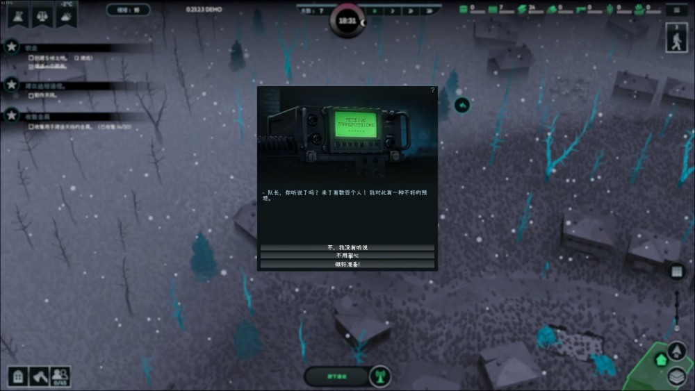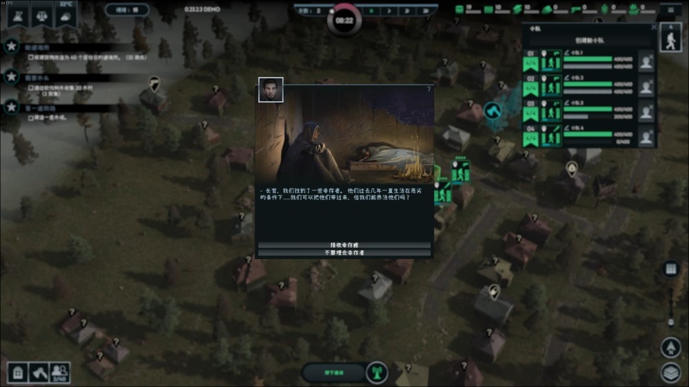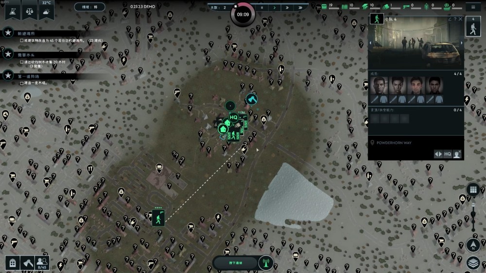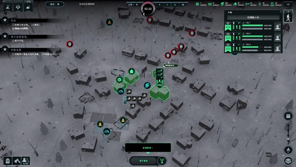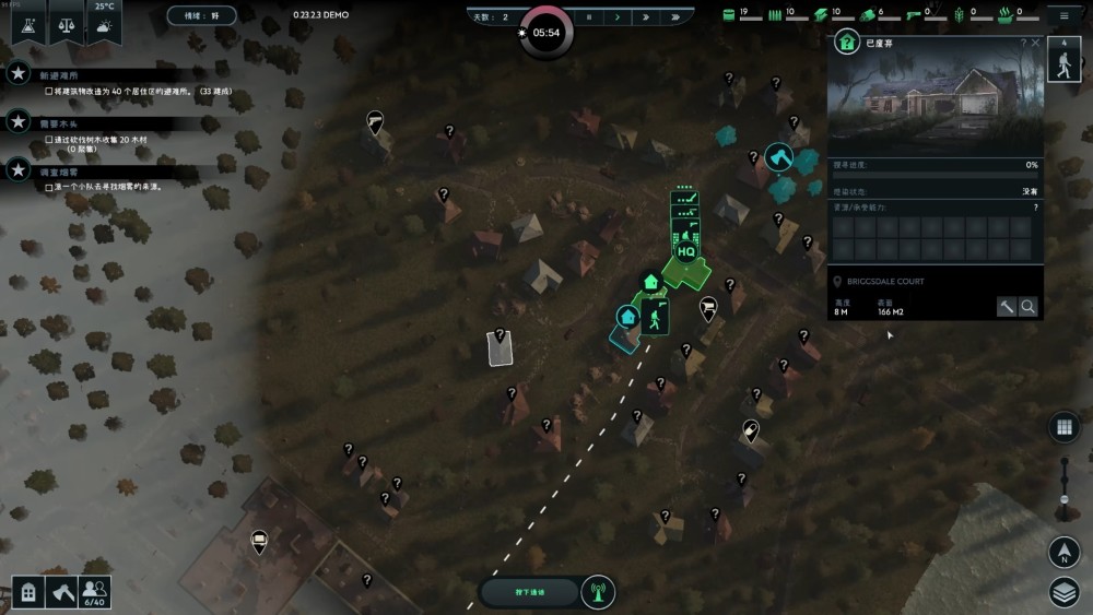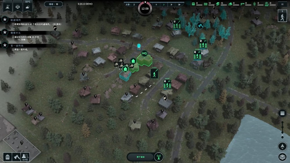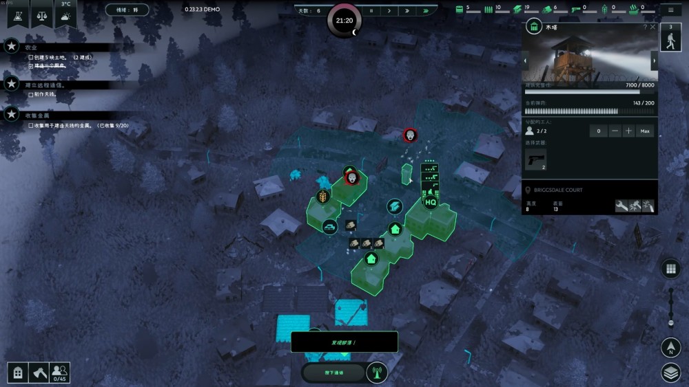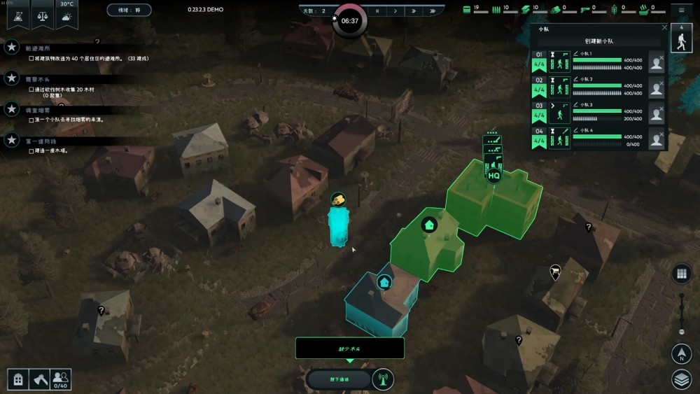 從避難所出生之後,大夥兒需要從基地開始,將周圍的普通住宅也擴建為新的避難所,將整個「無感染區」越做越大。當然,試玩版的內容,只需要堅持七天外加最後一波屍潮就可以了。