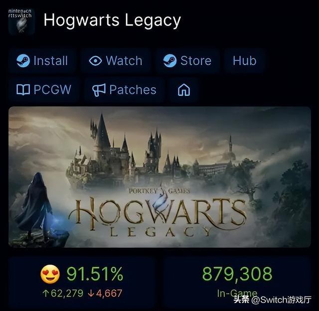 《霍格沃茨之遺》一經推出就受到了廣大玩家的喜愛,本作Steam平台的玩家在線數量更是達到了879308人,創下了單機遊戲在線玩家數量的記錄: