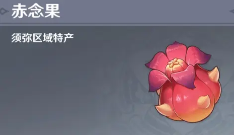 在《原神》中,赤念果是坎蒂絲的突破特產。這款材料被許多玩家認為是最難收集的材料之一。赤念果需要在沙漠中去尋找,而大多數時候一個地方只有不超過3個,並且因為離傳送點遠,就難以採用便捷的方式,即便是草神,採集的難度也很大。