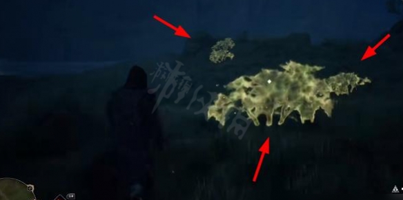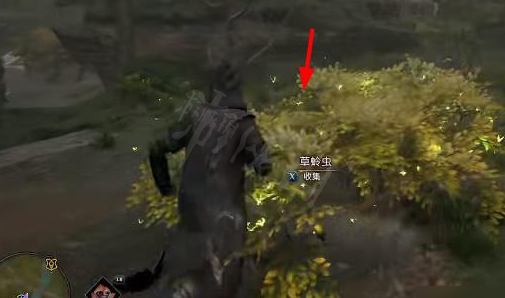 2、過去之後會發現是黑夜,這時不方便觀察,可以利用魔法進行探索,即可找到【草蛉蟲】的位置。在靠近收集即可。