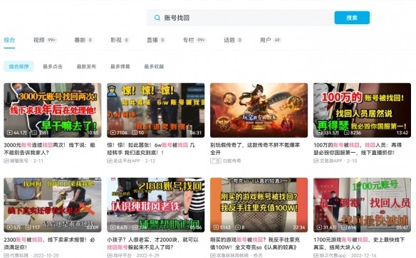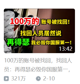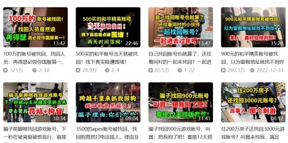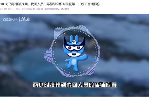 直到2022年,一些交易平台嘗試往B站發一些找回案例視頻——結果數據一發不可收拾,播放量瞬間就破了百萬。