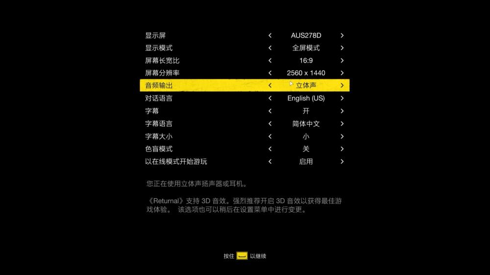音效方面本作提供了Resonance音效、Auro 3D和立體聲三種選項,Resonance可以為你提供定位更準確的立體音效,Auro 3D則為你帶來彷彿臨場般均勻的音效。但相比之下還是更推薦立體聲,《死亡回歸》支持的3D音效可以讓你彷彿置身於影院一般。