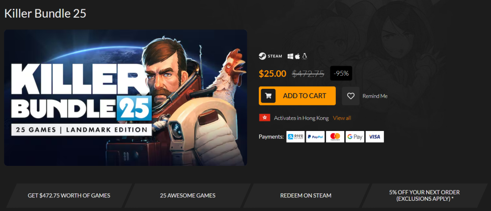 在線零售商Fanatical近日推出了一個名為「Killer Bundle 25」的超值Steam遊戲促銷包,包含總價值472美元的25款遊戲,一起只售25美元(0.5折),相當於1美元1款。促銷包在Fanatical的官網進行販售。