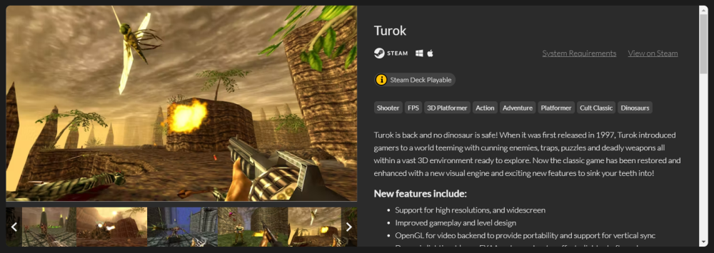 這裡面比較知名的是RPG經典《博德之門》《博德之門2》,大牌射擊遊戲《毀滅戰士64》(原價4.99美元),N64時代著名的《恐龍獵人1》《恐龍獵人2》等。2022年出的新遊戲有末世射擊遊戲《霓虹入侵者》,射擊遊戲《邪惡之中》《Dusk》,休閒遊戲《我是小魚兒》《高爾夫大亂斗》,大富翁遊戲《人生遊戲 2》等。