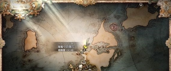 「海鳴洞穴」的入口需要從托托哈哈島「獸人之濱-停泊處-」右側的小碼頭乘船,然後往左走。