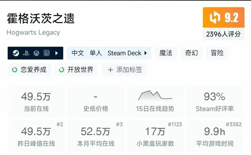 總結起來就是哈利波特IP的巨大和游戲的游戲性還可以,其次就是作者爭議言論的反對者帶來的熱度。