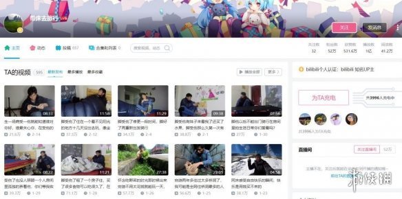 這位UP主名叫「帶床去旅行」(也被粉絲叫做床哥),目前已經擁有了52W的粉絲數,平均每條視頻,也有著幾十萬甚至上百萬的播放量。