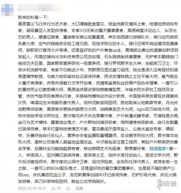 床哥在互聯網上定位的差異,讓我想起了另一位徒步旅行的主播。