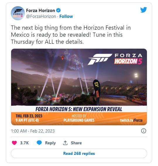 通過去年推出的「風火輪」擴展包,《極限競速:地平線5》的玩家已經獲得了很棒的額外體驗,在獲得口碑和商業成功之後,開發商Playground Games準備分享接下來將推出的擴展內容。工作室此前證實,游戲新擴展包情報將在年初的某個時候公布,現在官方確定了具體時間。