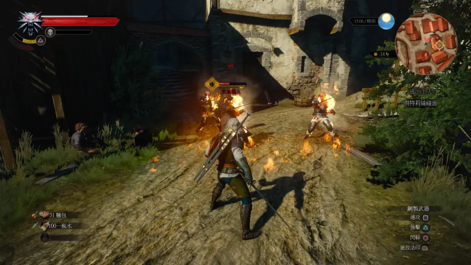 幸虧特莉絲未雨綢繆,潛藏的女巫獵人被吸引而來,戴著黑豹面具的白狼被當成艾伯特,盡管武器被收繳,但配合法印殺死女巫獵人並不難。