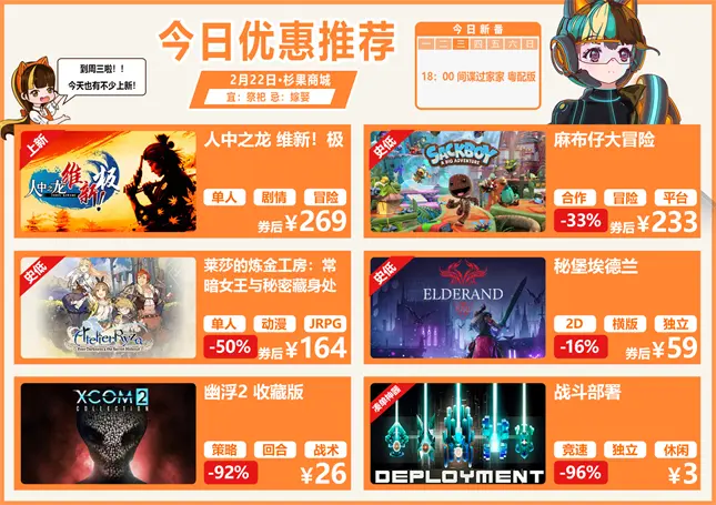 今天是 2 月 22 日星期三,睡意朦朧的果娘繼續為大家帶來最新 ACG 新聞: