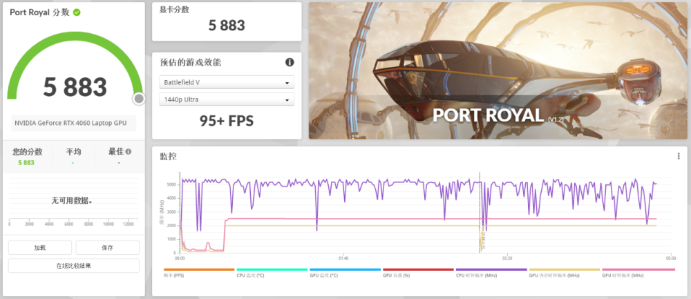 而如果我們用去年的主流遊戲本GPU- RTX 3060的成績(參考值5431、20682、4307和9243 )來對比的話, 可以看出這張4060的理論性能提升幅度大約在30%左右,性能提升十分可觀。
