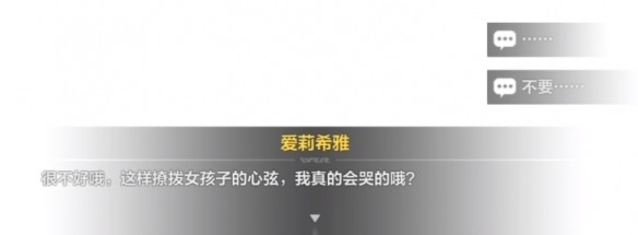 她總是「撩人」「舉止輕佻」地佔據對話主動權,比如第一次見面就對芽衣的角產生了濃厚的興趣,後續的劇情中更是想盡辦法去摸摸芽衣的角,在調戲完人之後還會得寸進尺:「哎呦,你臉紅啦」,就像是一個讓人不止是拳頭硬了的壞女人,但是吧,芽衣(你)也不是沒有反擊過,每次被反攻,愛莉平靜中略帶一絲微紅的臉頰又說明她是會害羞的。