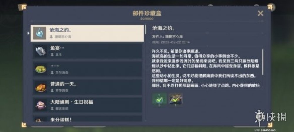 今天是2月22號,也是《原神》高人氣5星角色「海天後」珊瑚宮心海的生日!玩家登陸遊戲即可收到她的郵件,還可額外領取5個浮游幽核,以及她的專屬料理「奇策」。