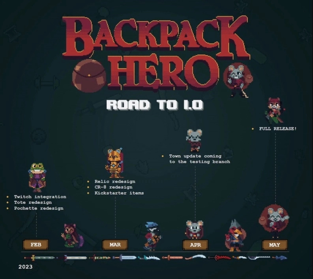 Jaspel開發的Roguelike遊戲《背包英雄(Backpack Hero)》,宣布將自2023年5月起結束搶先體驗,推出正式版。本作登錄Steam、PS、Xbox、Switch等平台,支持中文。